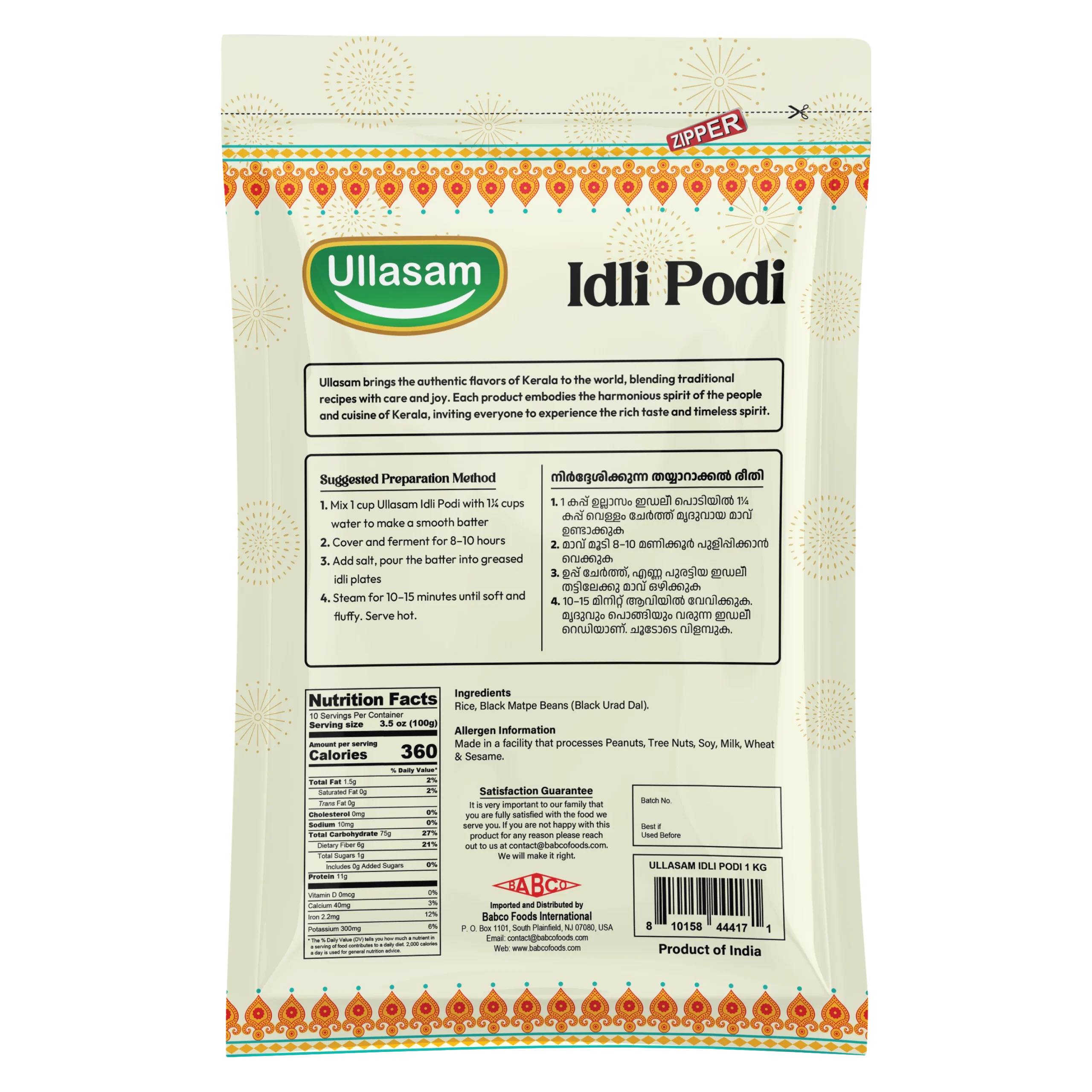 Ullasam Idli Podi is a traditional South Indian spice blend made from roasted lentils, red chilies, and aromatic spices, ground to a coarse, flavorful texture. Rich in taste with a balanced spice profile, it pairs perfectly with idli, dosa, uttapam, and hot rice when mixed with oil or ghee. Ullasam Idli Podi brings authentic homemade flavor and classic South Indian comfort to every meal.