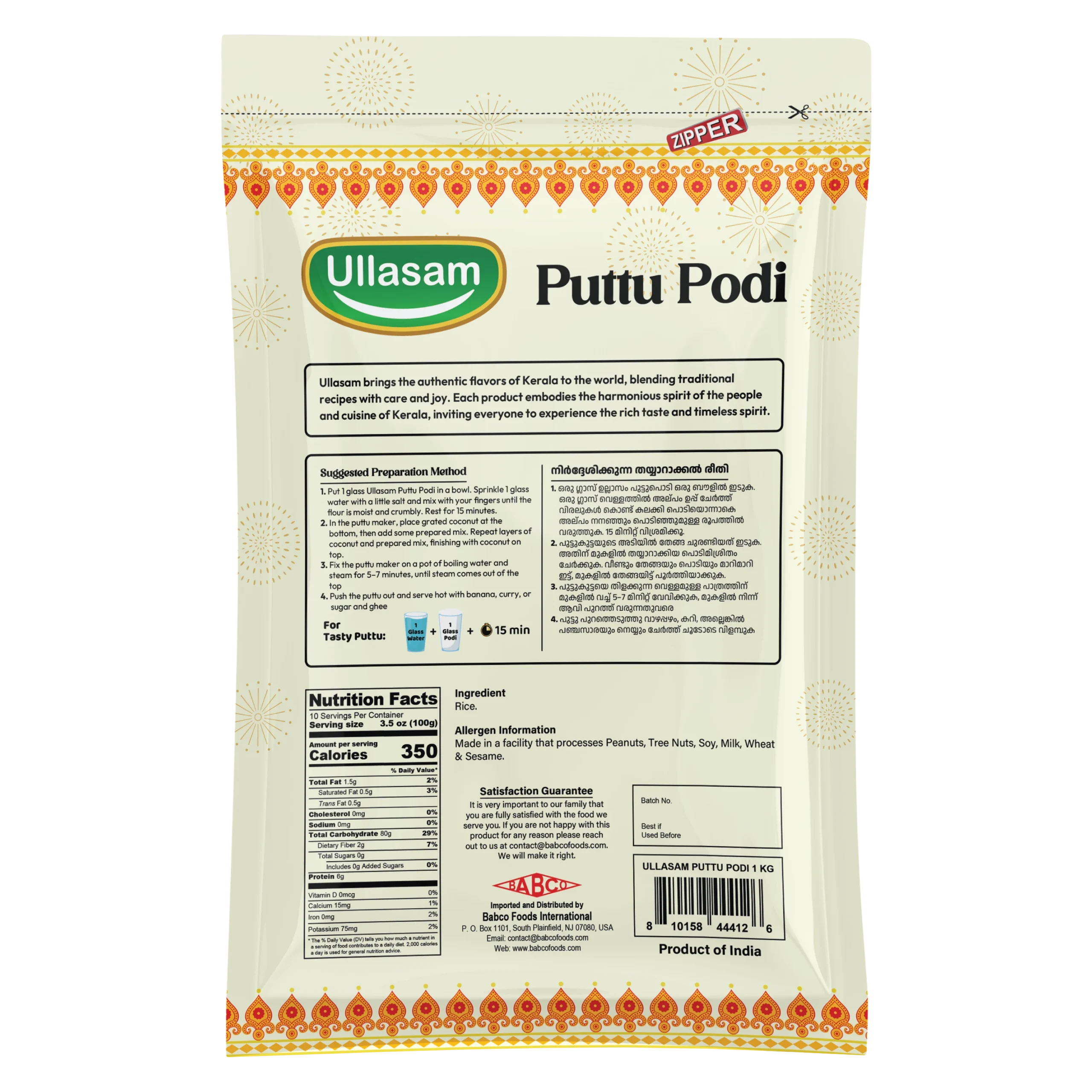 Ullasam Puttu Podi is a traditionally prepared rice flour made from carefully selected rice, roasted and ground to achieve the ideal texture for soft, fluffy puttu. Known for its clean aroma and consistent quality, it ensures perfect results with every preparation. Ideal for everyday meals or special occasions, Ullasam Puttu Podi brings authentic Kerala taste and trusted homemade goodness to your kitchen.
